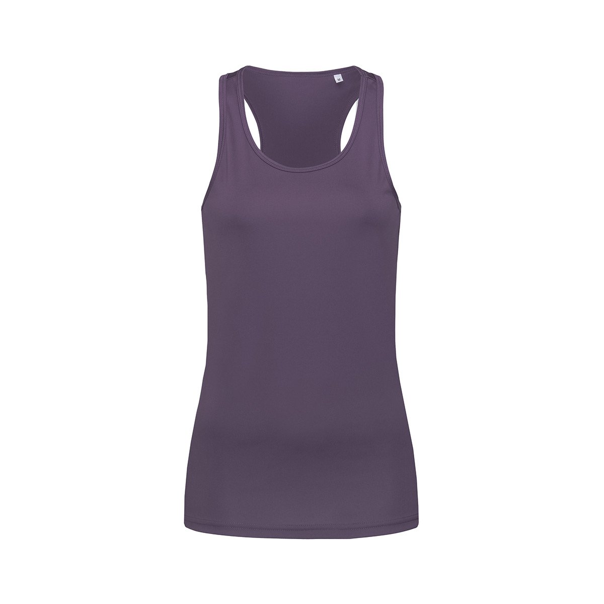 Майка-борцовка, мягкая и слегка блестящая ткань, боковые швы, вырез под горло и проймы с оторочкой, небольшой светоотражающий принт ACTIVE-DRY°на спине, этикетка с указаниями по уходу в боковом шве, маленькая бирка с размером со стороны спины.