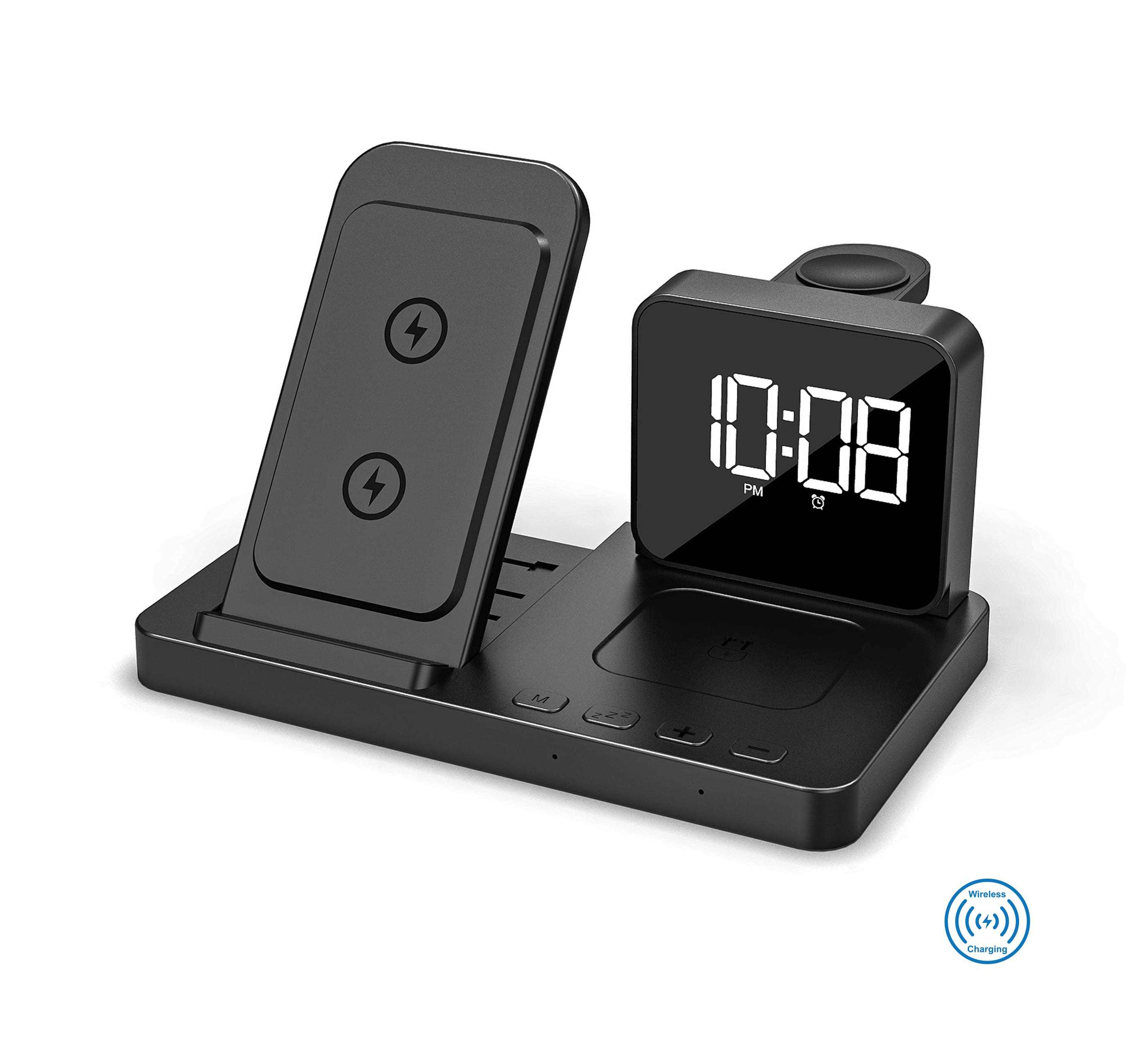 Бездротовий зарядний пристрій з годинником CONVEE. Одночасна зарядка 3 пристроїв. Можна заряджати смартфон + смарт годинник Apple Watch + навушники.