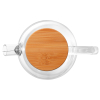 Чайник заварювальний виготовлений із високоякісного, термостійкого, боросилікатного скла, кришка виготовлена з бамбука, нержавіючої сталі та силікону,в горловині встановлена з'ємна спіраль, яка не дає виливатись в чашку заварку або фрукти. Об'єм 1800 мл., запакований в картонну подарункову коробку та пупирчастий пакет для кращого зберігання при транспортуванні. Метод нанесення гравіювання на бамбукову кришку,деколь на скляну колбу