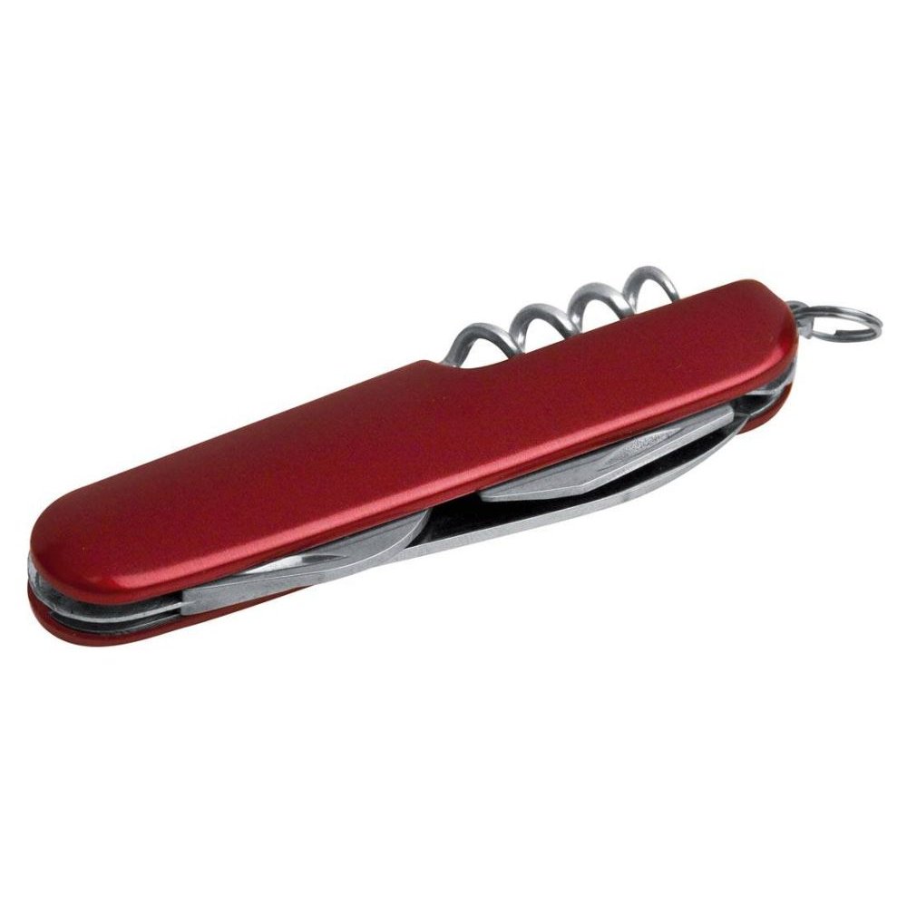 Ніж HAVANNA з нержавіючої сталі. Крім великого леза має: консервний ніж, відкривачку для пляшок з викруткою, штопор, хрестову викрутку і кільце для ключів. Алюмінієва рукоятка.