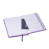 Тверда та приємна на дотик обкладинка з широкою резинкою. Є можливість додати металеву шильду під нанесення логотипу (постачається окремо). Кремовий папір. Внутрішня кишеня, 8 аркушів з перфорацією для легокого відривання.