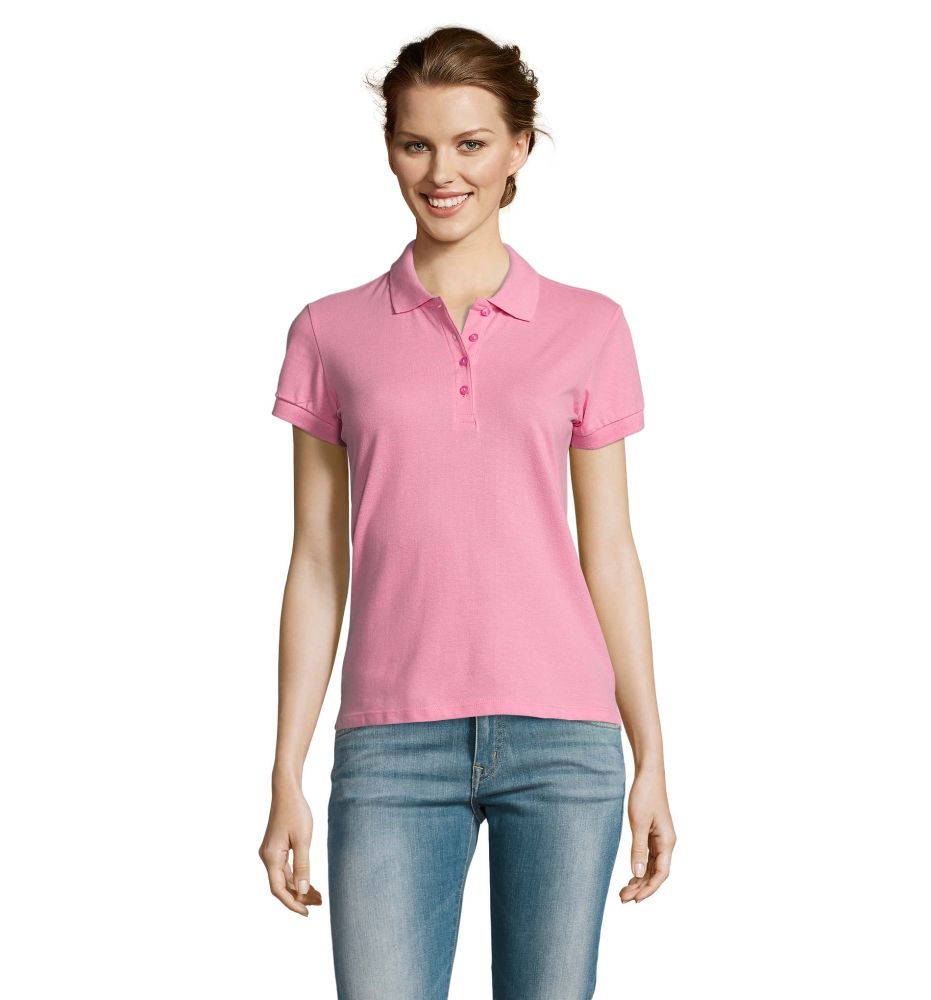 Футболка поло жіноча SOL’S People. Висока якість і жіночність. Зміцнююча тасьма по коміру, комір і манжети оброблені плоским рібом (резинка 1 * 1) з додаванням еластану. Планка з 4 перламутровими ґудзиками в тон, низ виробу прямий з бічними розрізами для кращої посадки по фігурі. Облягаюча модель.
