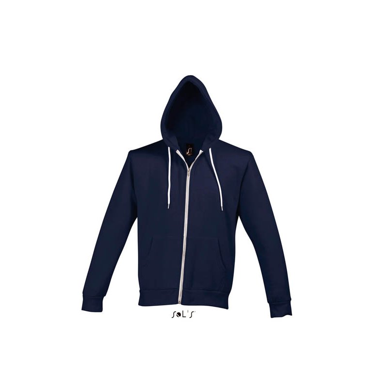 Світшот унісекс на блискавці з капюшоном з білим контрастним шнурком. Вшивний рукав;
