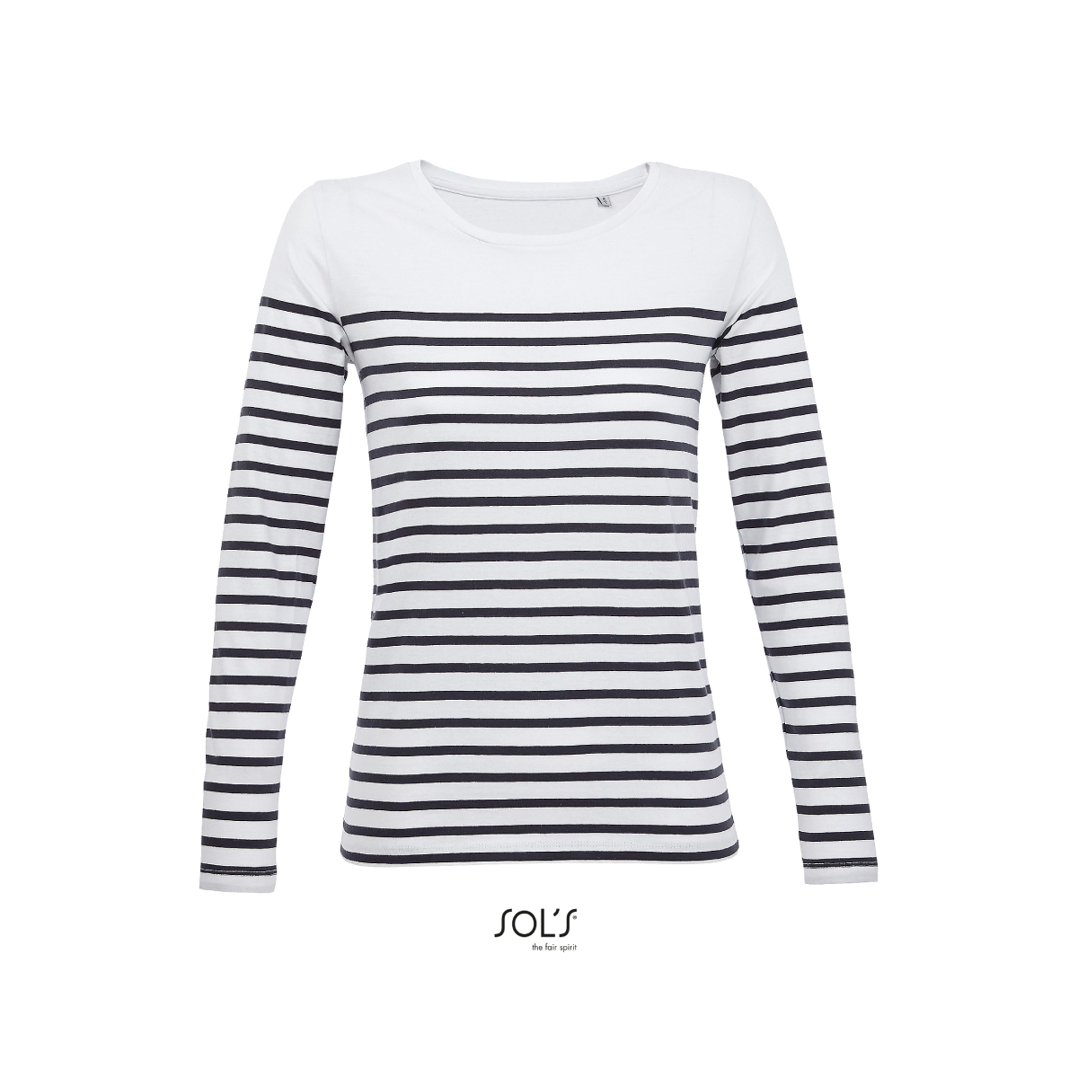 Жіноча футболка в смужку SOL'S MATELOT LSL WOMEN з довгим рукавом. Круглий виріз. Прямий крій. Кроєний трикотаж. Оздоблення в смужку. Матеріал: ДЖЕРСІ 160 - 100% бавовна Ringspun. Опрацьовано ензимами для додання виробу особливої м'якості.
