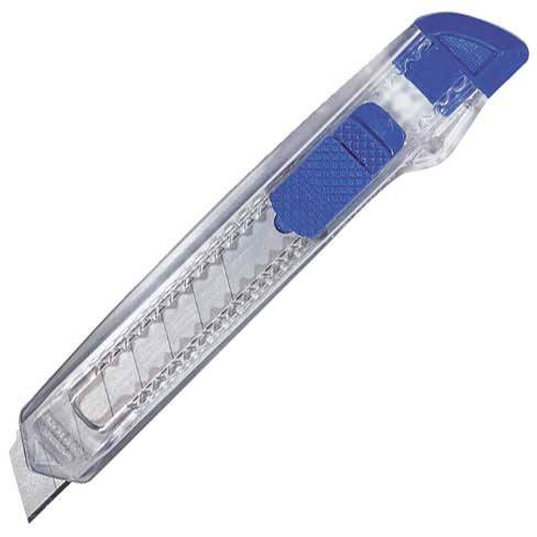 Канцелярський ніж зі стійкого до атмосферних впливів пластику. Замок забезпечує легке та просте використання леза в заданому положенні. Восьми сегментне лезо, виготовлене з високоякісної вуглецевої сталі, забезпечує точне різання. Стопер, розташований в задній частині ножа, крім того, що забезпечує захист механізму від випадання, дозволяє безпечно обламувати наступні сегменти леза.