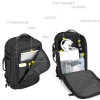 Рюкзак з відділенням для ноутбука 15,6” та відділенням для ipad .Тканина водонепроникний 100% поліестер + PU, має USB Port, великий відділ з еластичними ремінями для одягу та різні кармани-органайзери, прихована кишеня на лямці для карток, бокова кишеня для пляшки, на задній спинці ремінь для валізи. Рюкзак має крім вертикальної ручки горизонтальну і може трансформуватися в сумку, при цьому задні лямки ховаються в приховане відділленя.