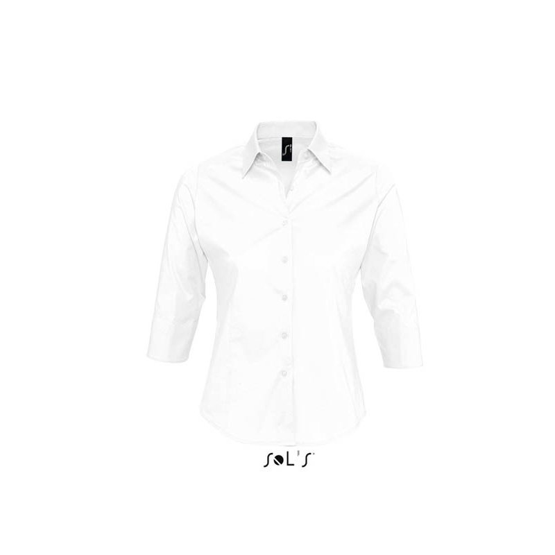 Сорочка жіноча SOL'S EFFECT. Приталена модель. Рукав 3/4 з відворотом та розрізом. Комір на одному гудзику. Планка з 7 гудзиками у колір виробу. Витачки спереду та на спині. Матеріал: 97% бавовна – 3% еластан. Щільність: 140 г/м2.